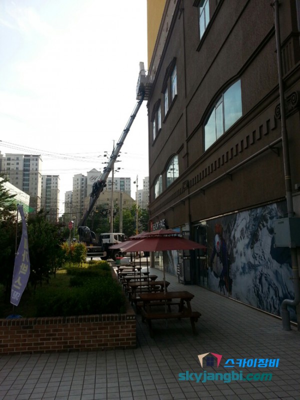 스카이장비대여 임대,스카이차,스카이중장비차,스카이사다리차 대여,유리설치공사작업,간판설치작업,