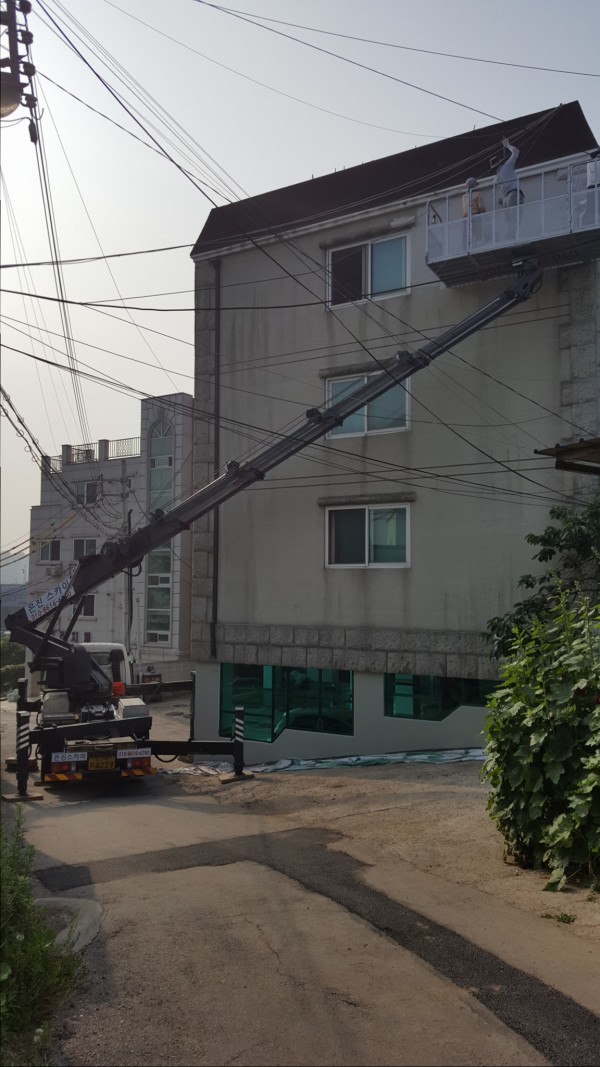 외벽공사,유리공사,간판공사,페인트공사,기타등등 공사벽면에 작업대를 최대한 가까이 밀착 시켜